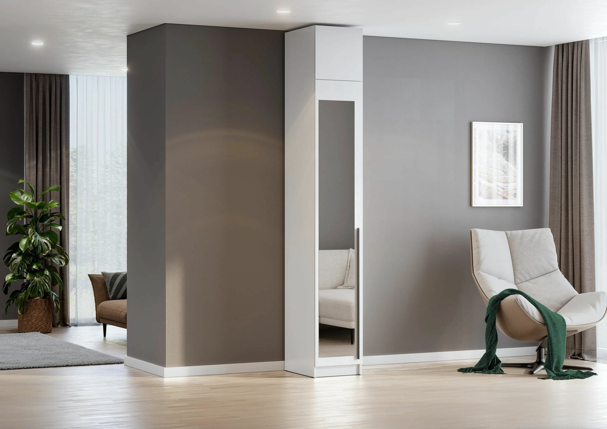 Шкаф для одежды распашной Нонтон Луас, 120 см, 7 полок и штанга, белый глянец