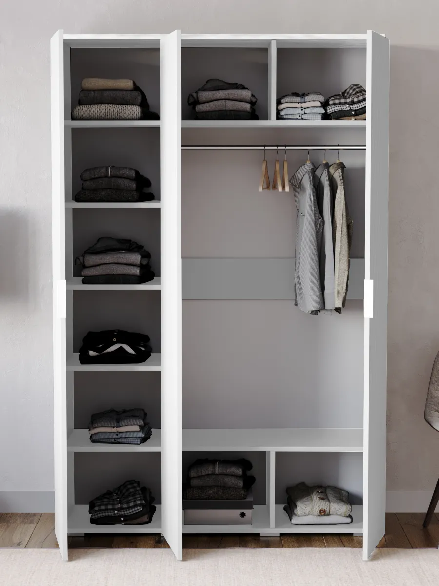 Шкаф для одежды распашной Нонтон Луас, 120 см, 7 полок и штанга, белый глянец