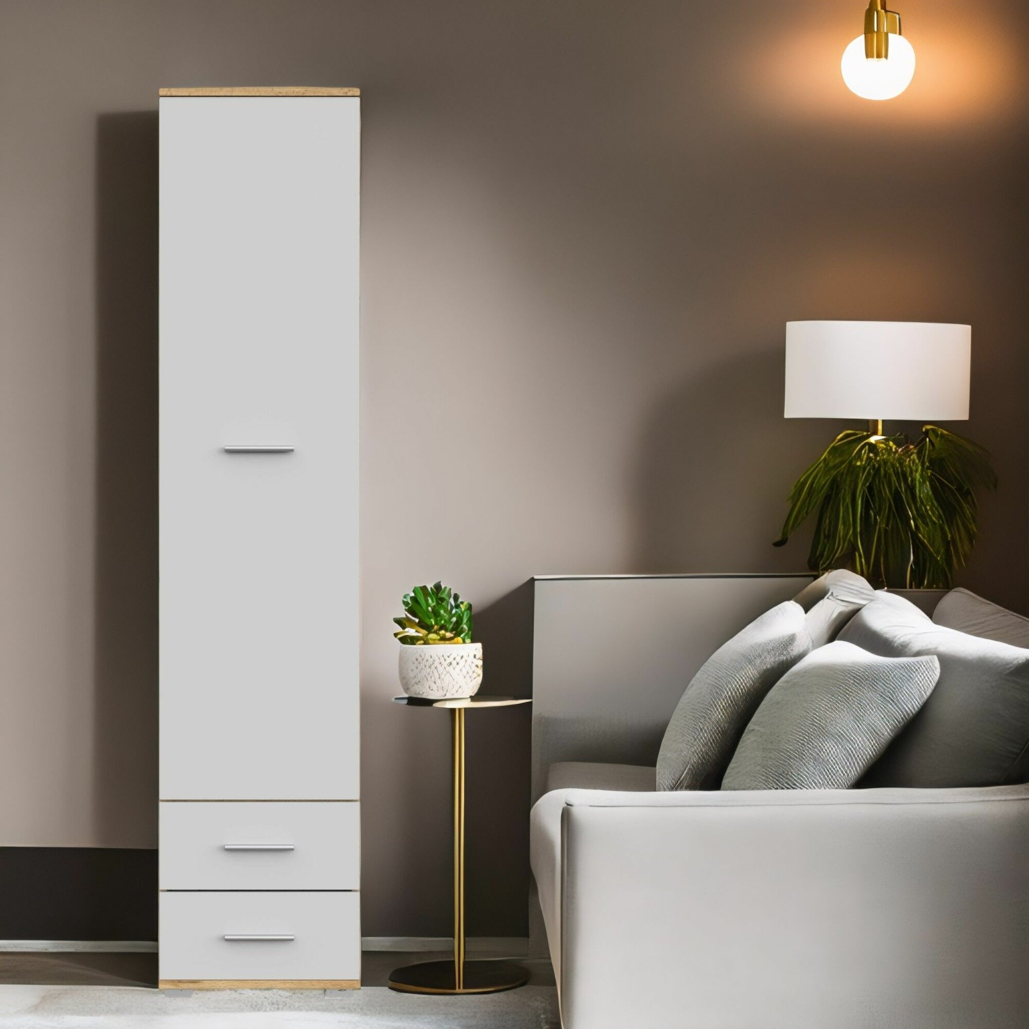 Отзывы на Шкаф, шкаф деревянный FUN СТ-3.180 , Дуб Вотан/Белый, 40х180х34 см (ШхВхГ)