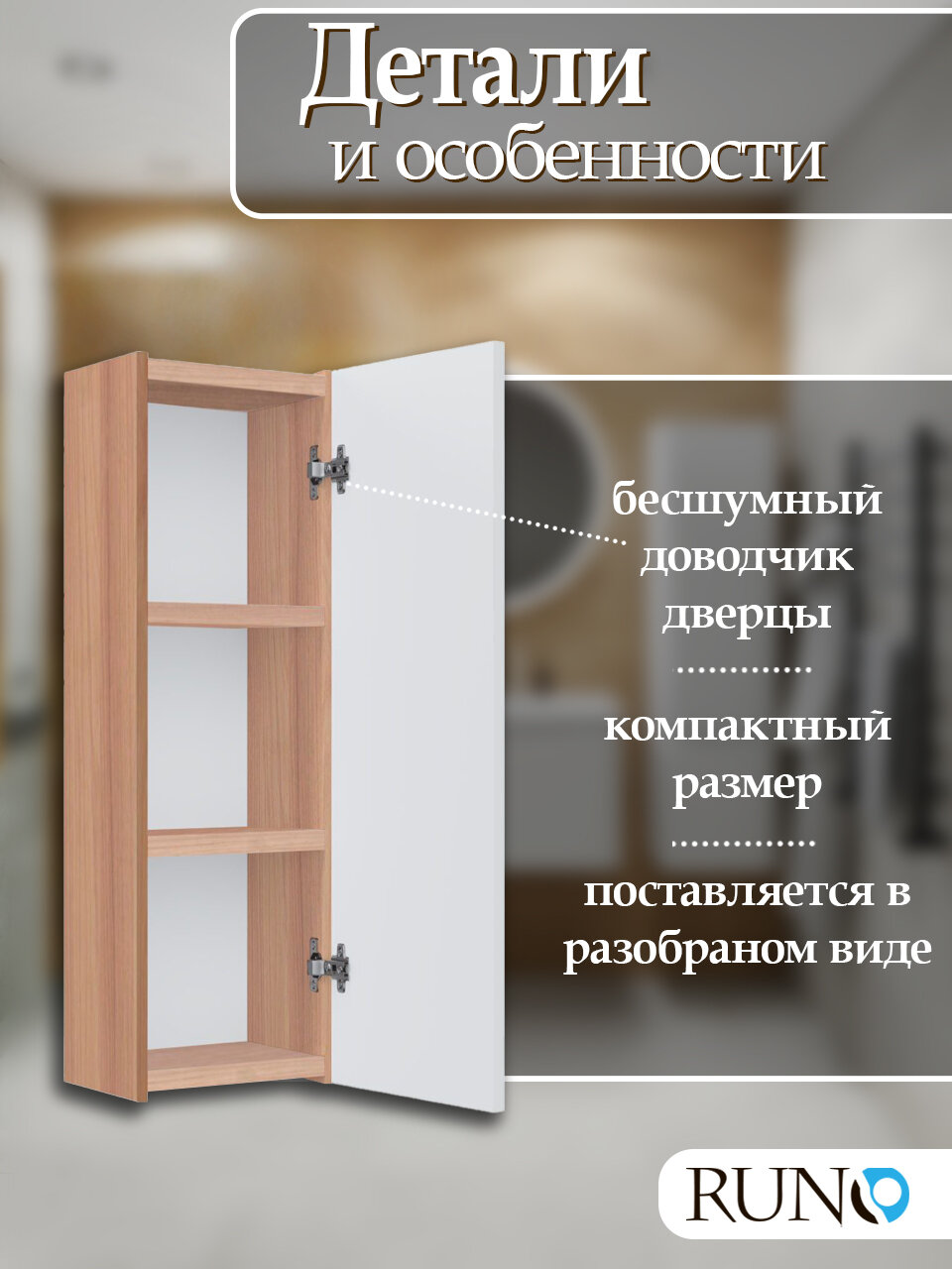 Шкаф навесной Runo Соренто 20, универсальный, крафтовый дуб-белый (вертикаль) информация: