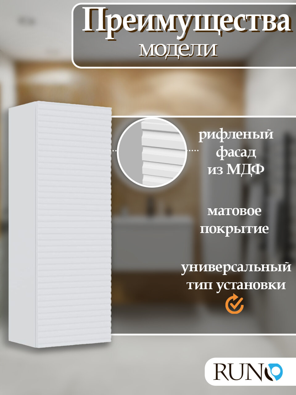 Шкаф навесной Runo Соренто 30, угловой, универсальный, белый матовый (вертикаль) 5 450 ₽