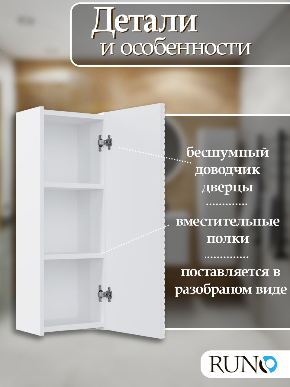 Шкаф с полками навесной Runo Соренто 40, универсальный, белый матовый (горизонталь) информация: