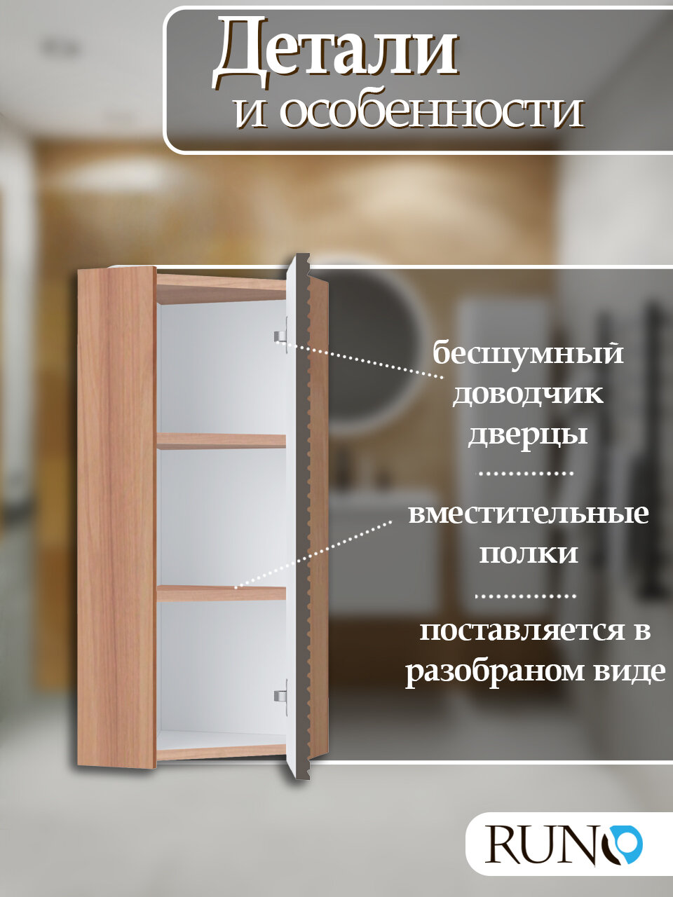 Шкаф с полками навесной Runo Соренто 30 угловой, универсальный, крафтовый дуб-графит (горизонталь) информация: