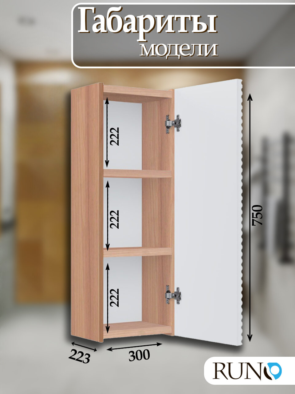 Шкаф с полками навесной Runo Соренто 30, универсальный, крафтовый дуб-белый (горизонталь) информация: