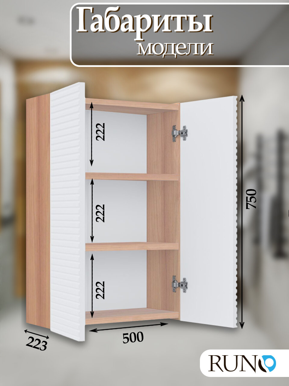 Шкаф с полками навесной Runo Соренто 50, универсальный, крафтовый дуб-белый (горизонталь) информация: