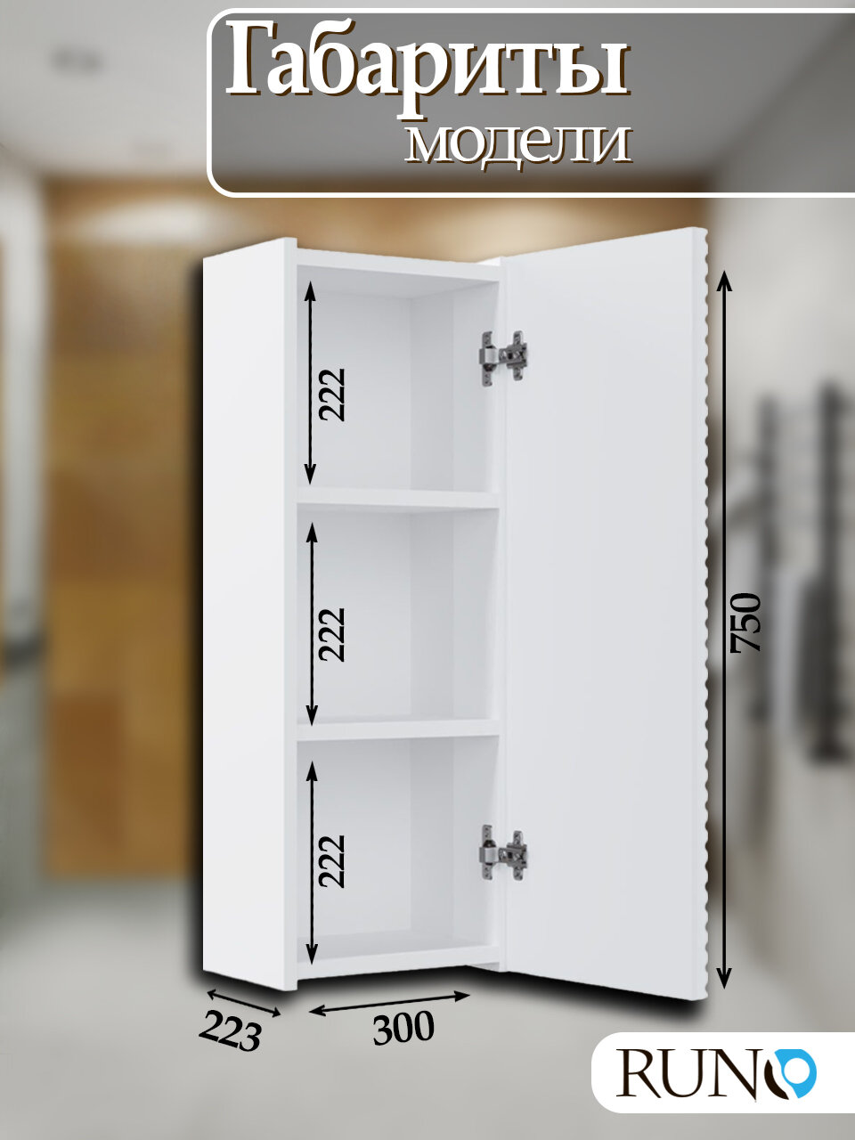 Шкаф с полками навесной Runo Соренто 30, универсальный, белый матовый (горизонталь) информация: