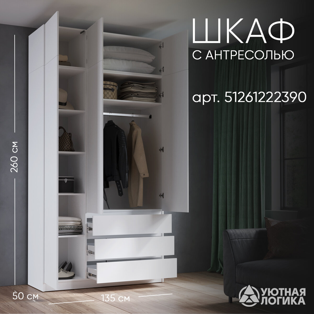 10 цен на Антресоль для шкафа 135 см УЮТНАЯ ЛОГИКА АН-020 / 135*40*50 см, Белая