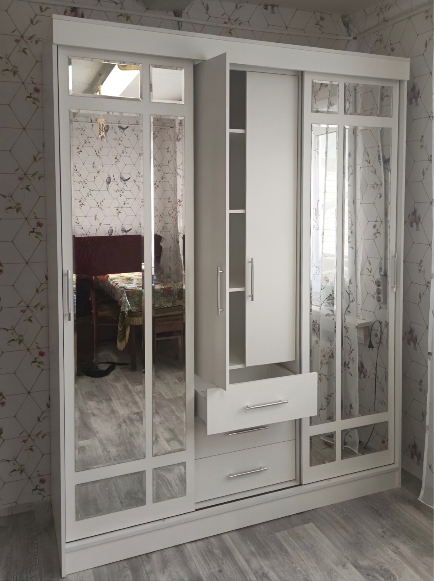 Отзывы на Шкаф-купе Маэстро Сандал светлый Миф/Шкаф с зеркалом ЛДСП, 170х222х57,4см