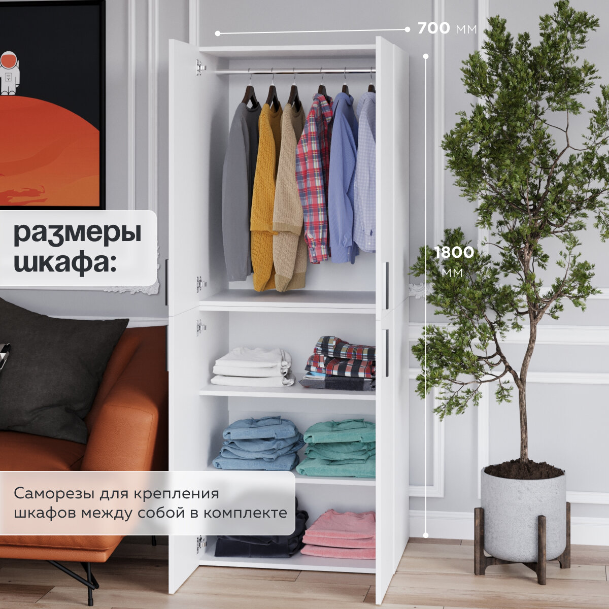 10 цен на Шкаф для одежды распашной модульный «Twin» 180х45х70; цвет белый; 2 секции