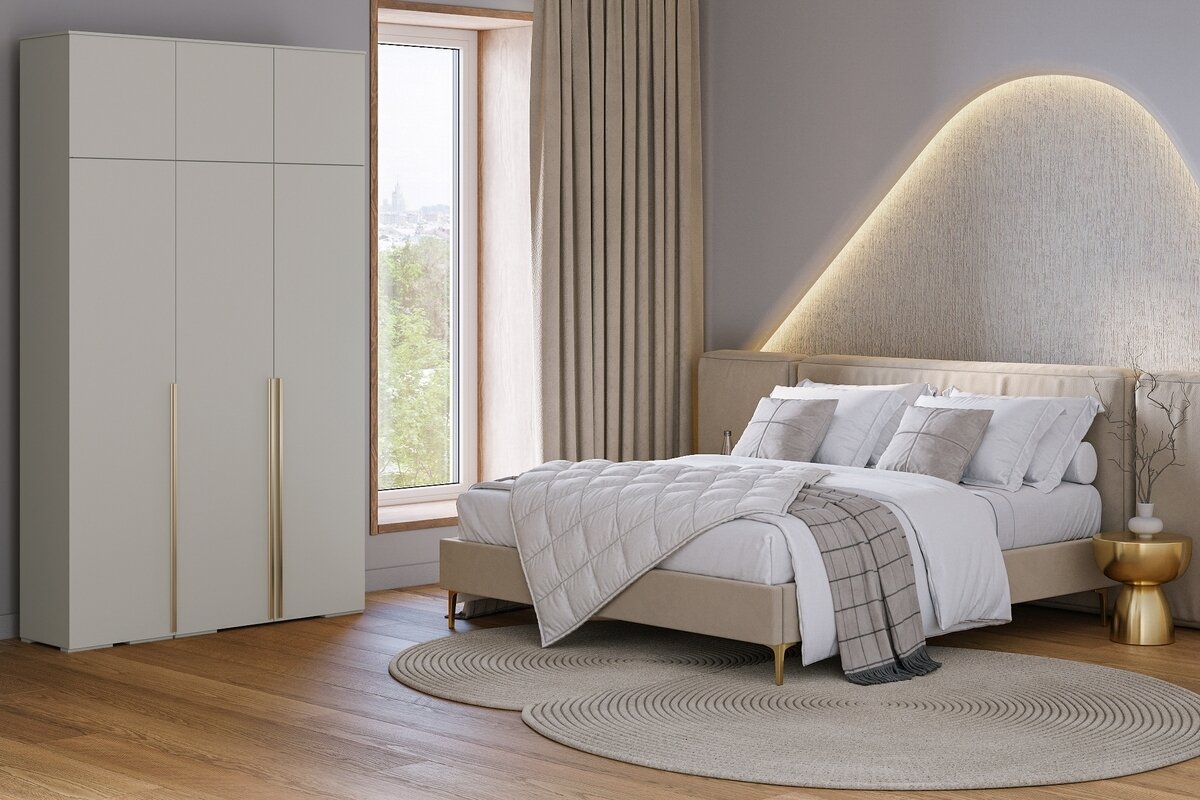Шкаф распашной МебельЛэнд24 Марсель - 3 Кашемир с антресолью 140x50x270 бежевый для одежды трехдверный
