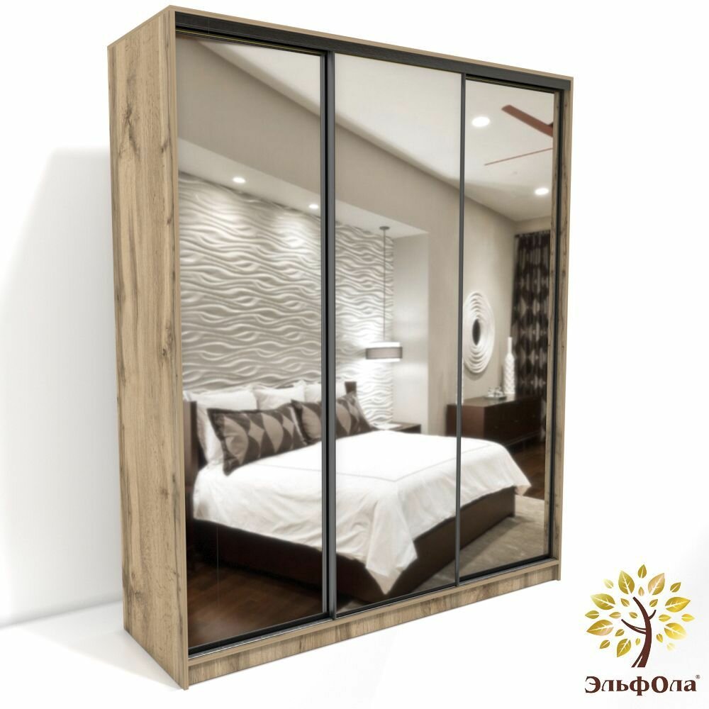 Шкаф-купе ЭльфОла "Элеганс" трехстворчатый 175*60*240 см, дуб вотан, зеркальные фасады 40 320 ₽