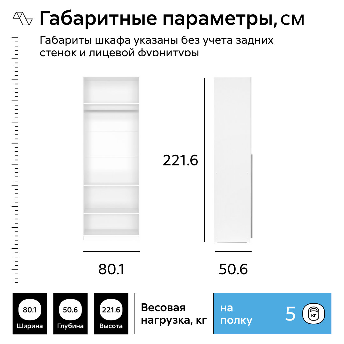 Шкаф для одежды распашной Нонтон Луас, 80 см, 5 полок, белый глянец 12 990 ₽