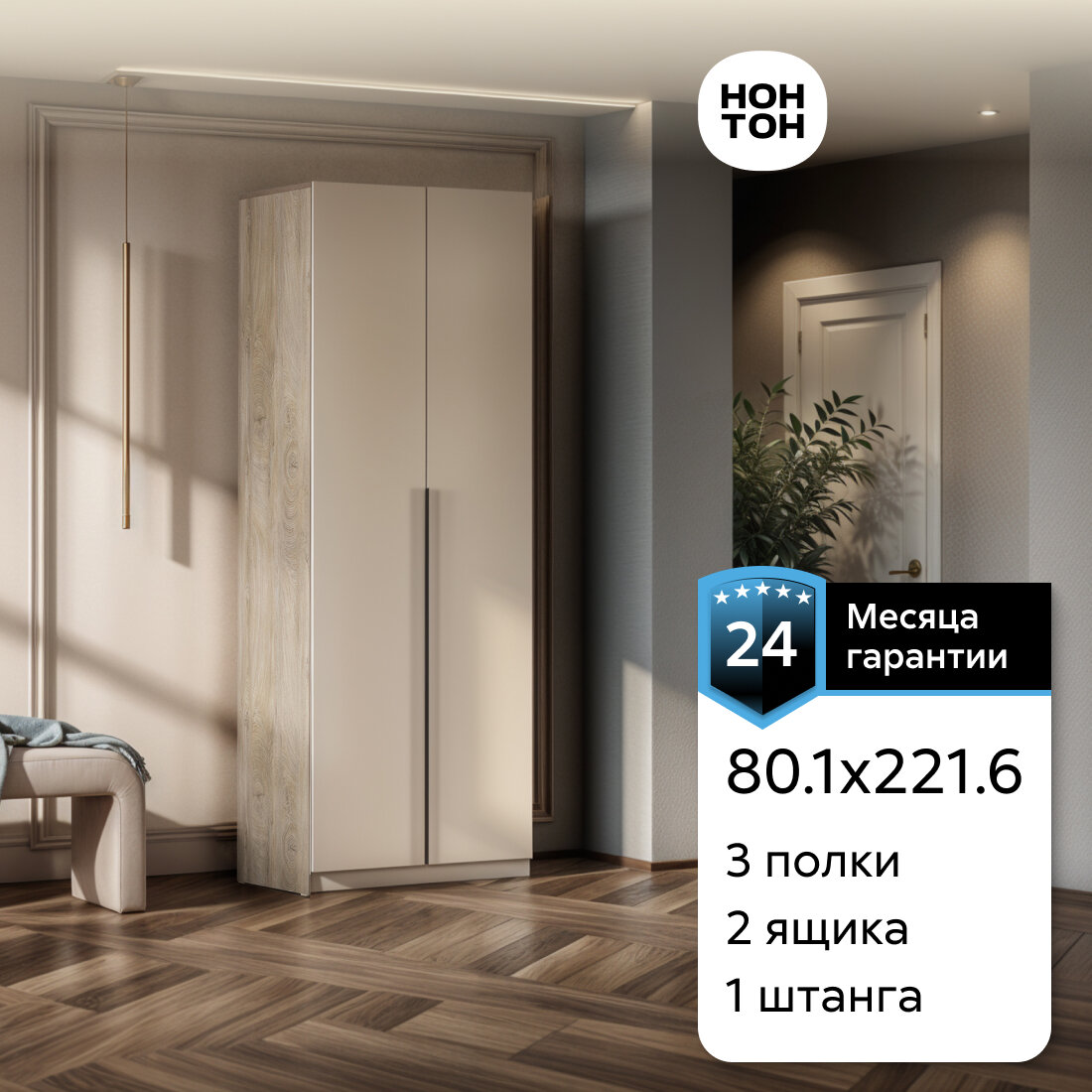Шкаф для одежды распашной Нонтон Луас, 80 см, 3 полки, 1 штанга, 2 ящика, эндгрейн / меланж информация: