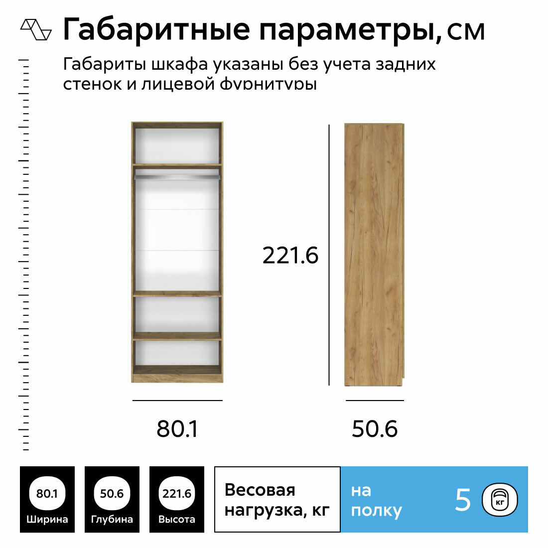 Шкаф для одежды распашной Нонтон Луас, 80 см, 5 полок, дуб золотой 10 790 ₽