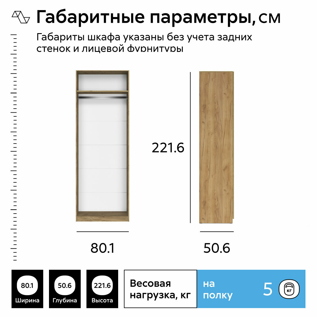 Шкаф для одежды распашной Нонтон Луас, 80 см, 1 полка и штанга, дуб золотой информация: