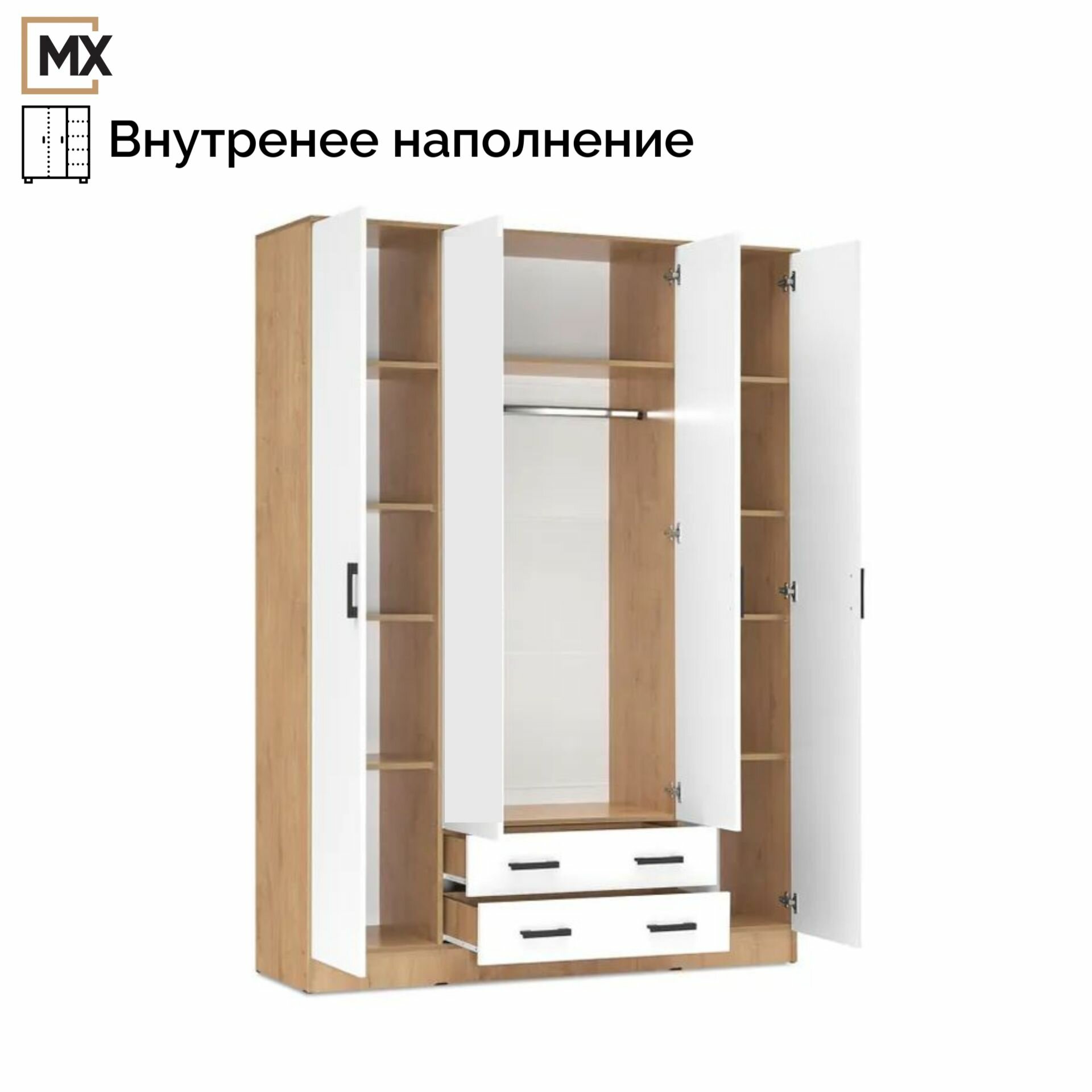 Отзывы на Шкаф распашной Квадро Дуб Вотан/Белый гладкий ЛДСП, с полками, ящиками, штангой, для спальни, гостиной 1600х2200х487 ЭРА