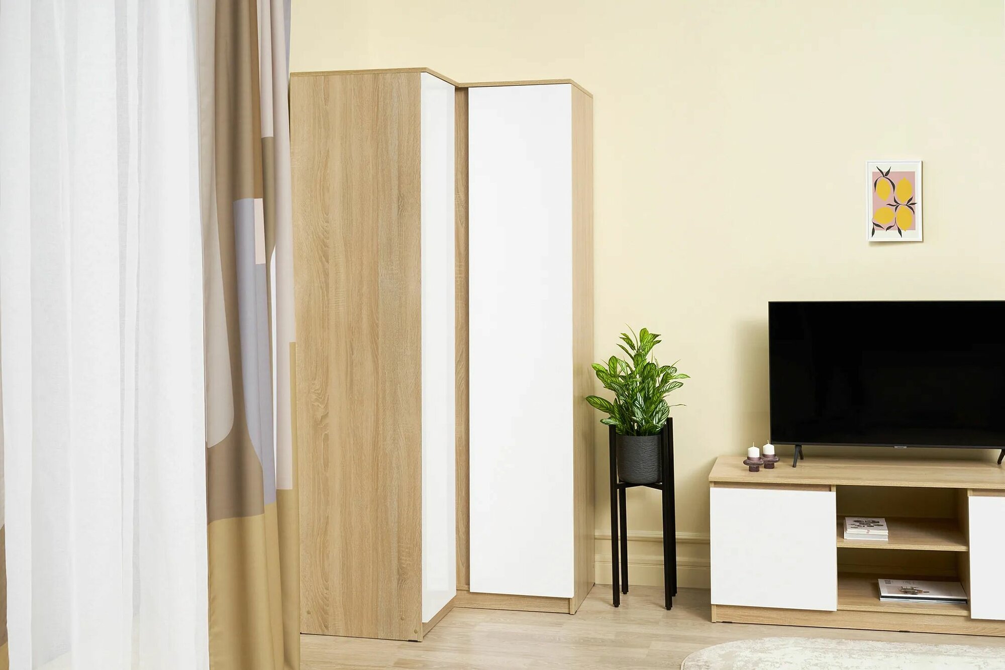 Шкаф угловой прямой Челси Белый глянец холодный/Дуб сонома информация: