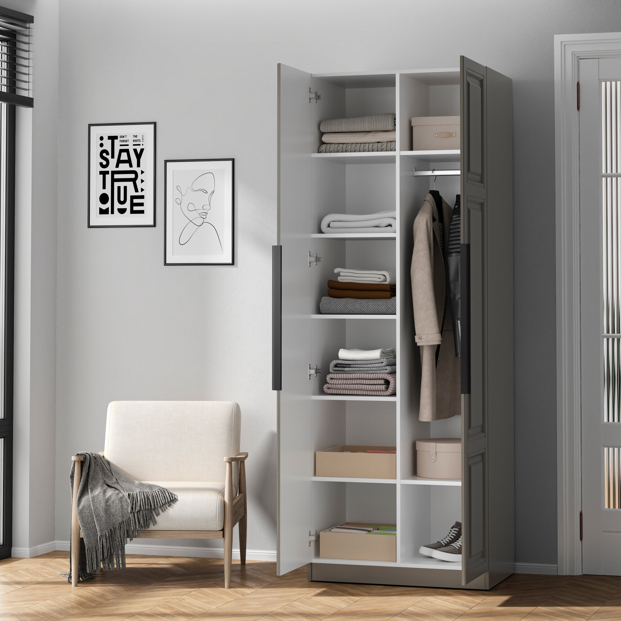 Шкаф для одежды распашной Нонтон Луас, 2 шт, 320 см, 20 полок и 2 штанги, эндгрейн / меланж