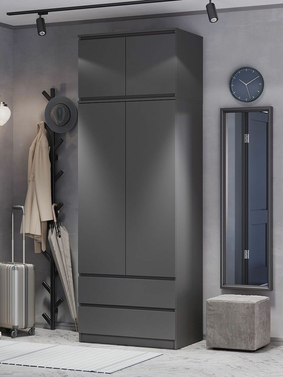 10 цен на Шкаф пенал распашной для одежды Симпл с ящиками, с полками, со штангой, 80.2х51.4х239.4 см, Графит С антресолью