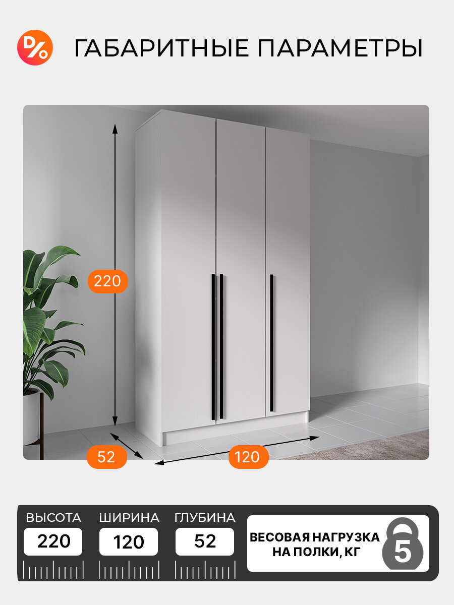 Шкаф распашной Бастион 3-х дверный без зеркал 1.2 м (белый древесный) информация: