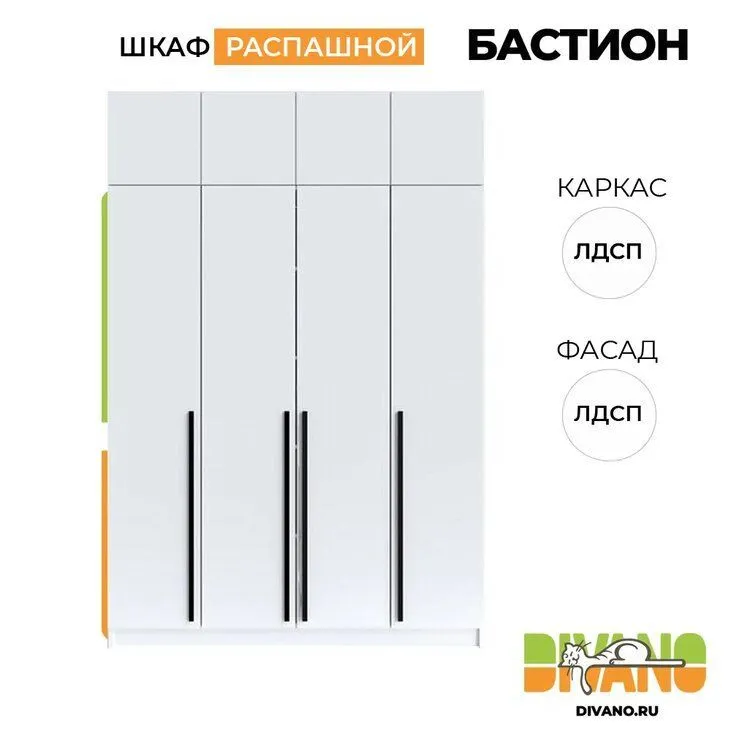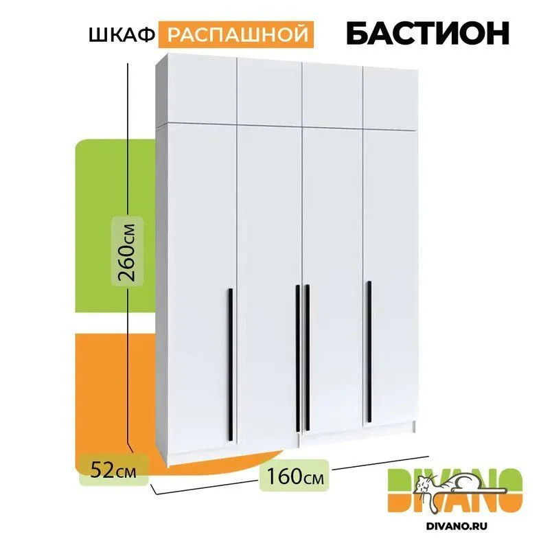 Шкаф распашной Бастион 4-х дверный с антресолью 2.0 м (белый древесный) информация: