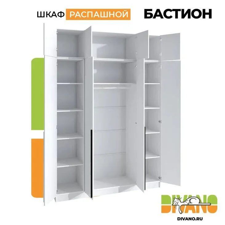 Отзывы на Шкаф распашной Бастион 4-х дверный с антресолью 2.0 м (белый древесный)