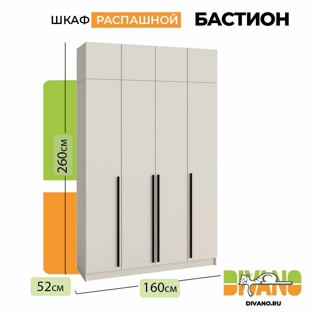 Шкаф распашной Бастион 4-х дверный с антресолью 1.6 м (кашемир) информация: