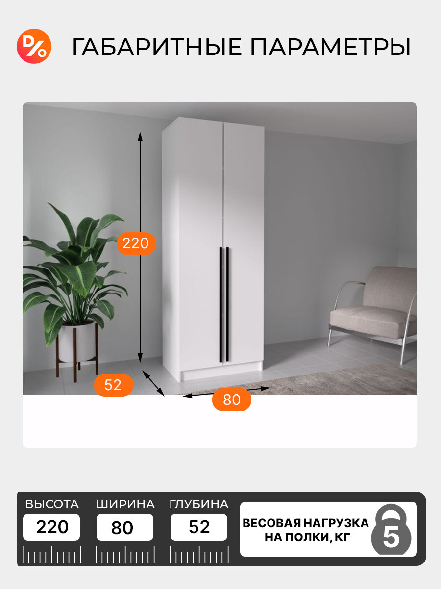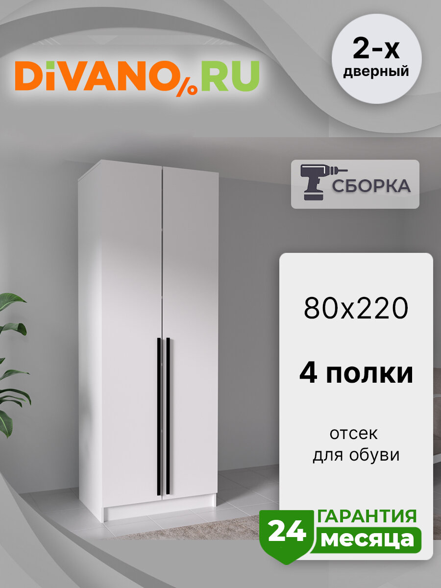 Шкаф распашной Бастион 2-х дверный без зеркал 0.8 м (белый древесный) информация: