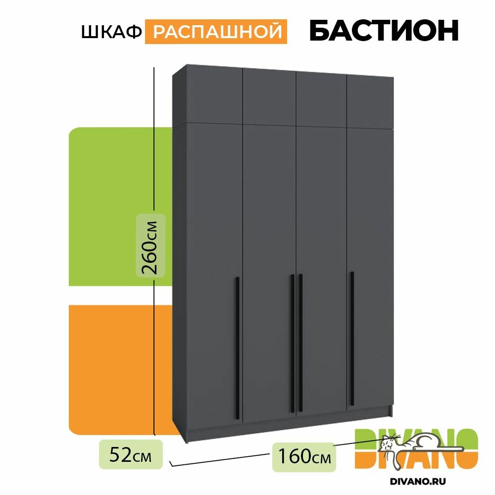 Шкаф распашной Бастион 4-х дверный 1.6 м (графит) 21 045 ₽