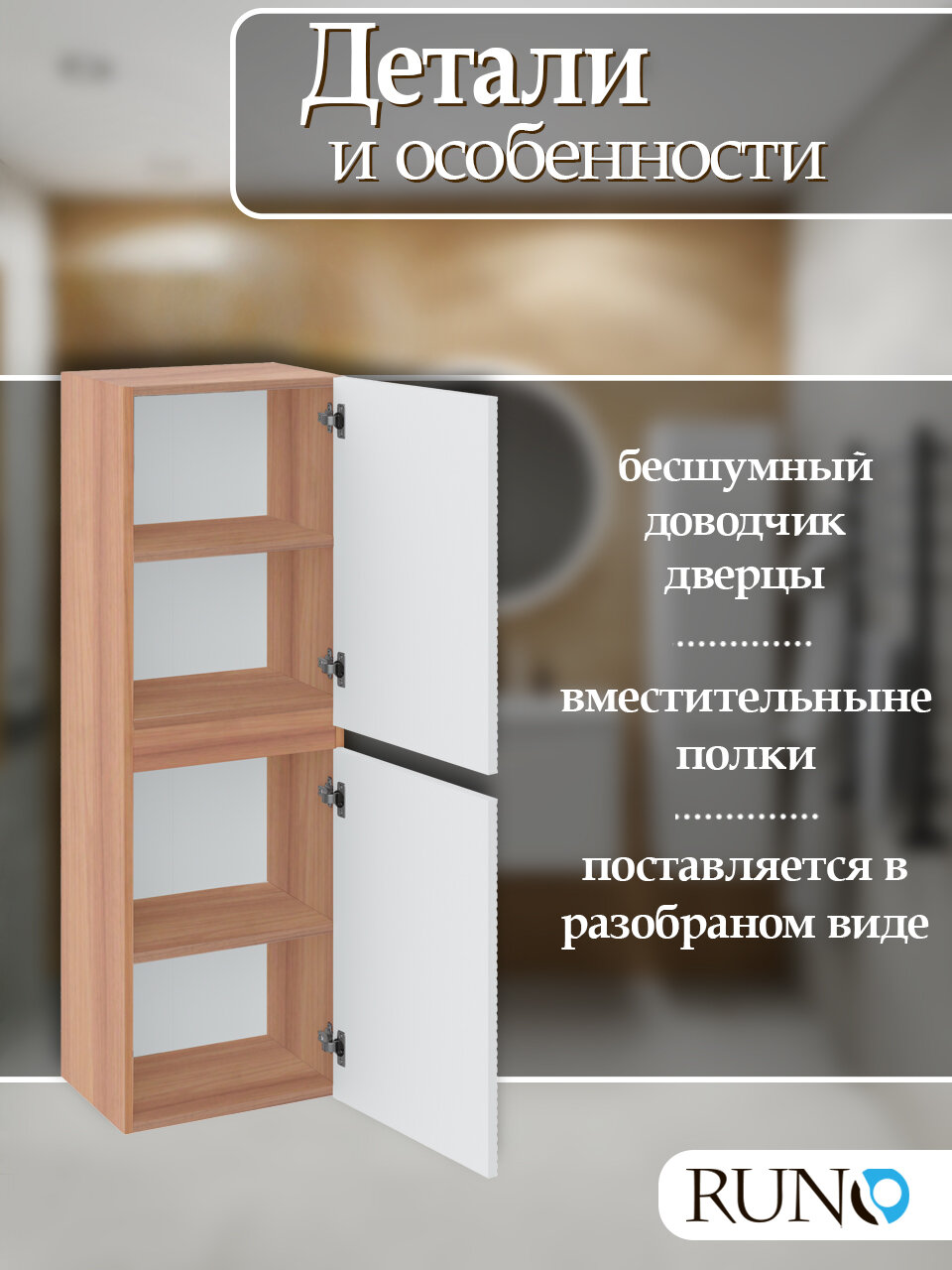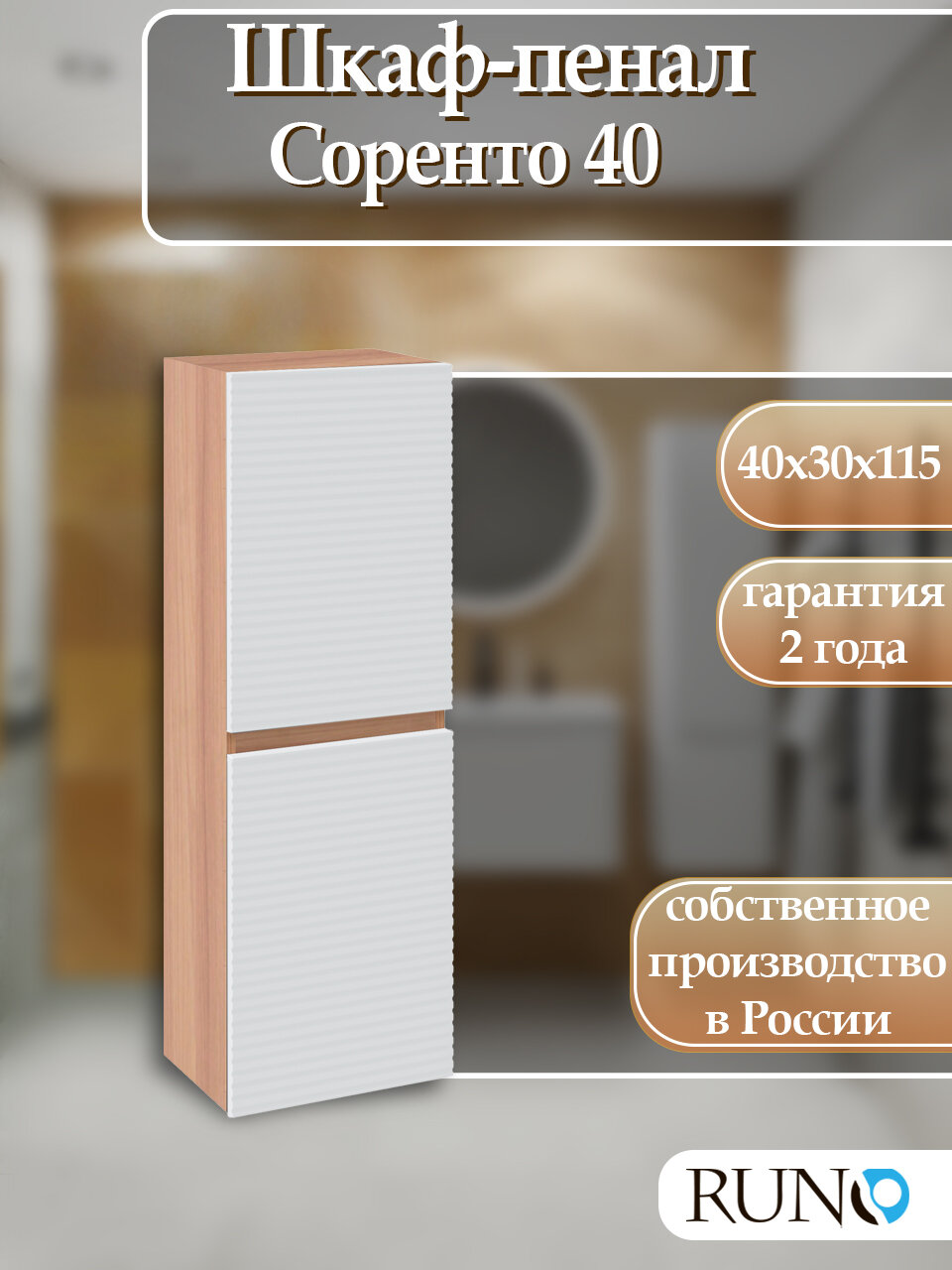 Шкаф пенал Runo Соренто 40, подвесной, универсальный, крафтовый дуб-белый (горизонталь) информация:
