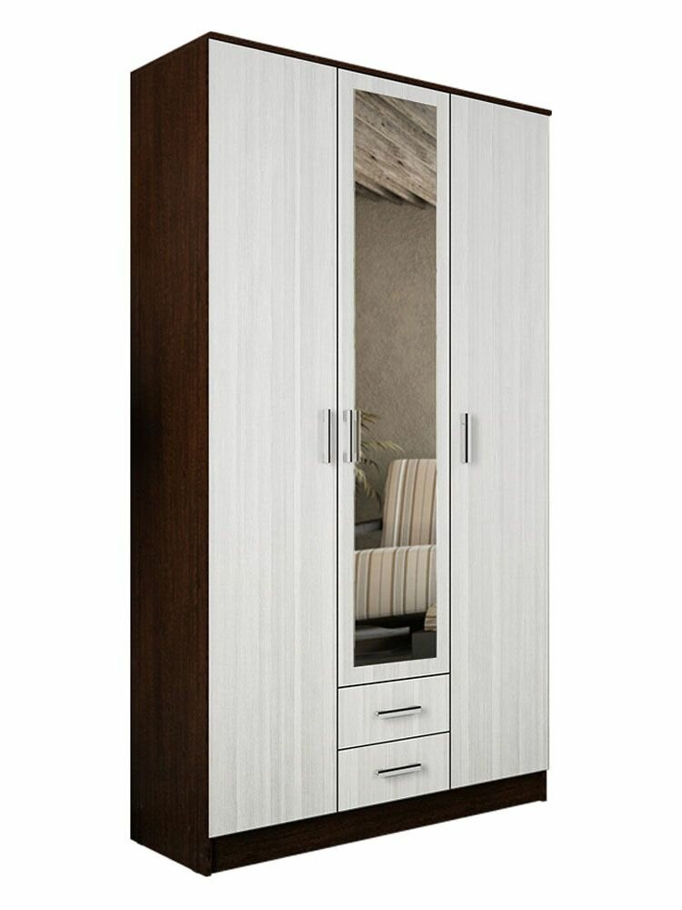 Отзывы на Шкаф распашной для одежды Трио с полками, с ящиками, с зеркалом, 120х49х220 см, Венге / Лоредо