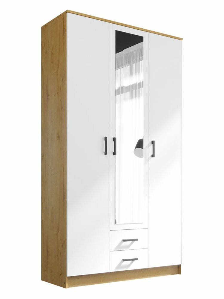10 цен на Шкаф распашной для одежды Трио с полками, с ящиками, с зеркалом, 120х49х220 см, Дуб вотан / Белый гладкий