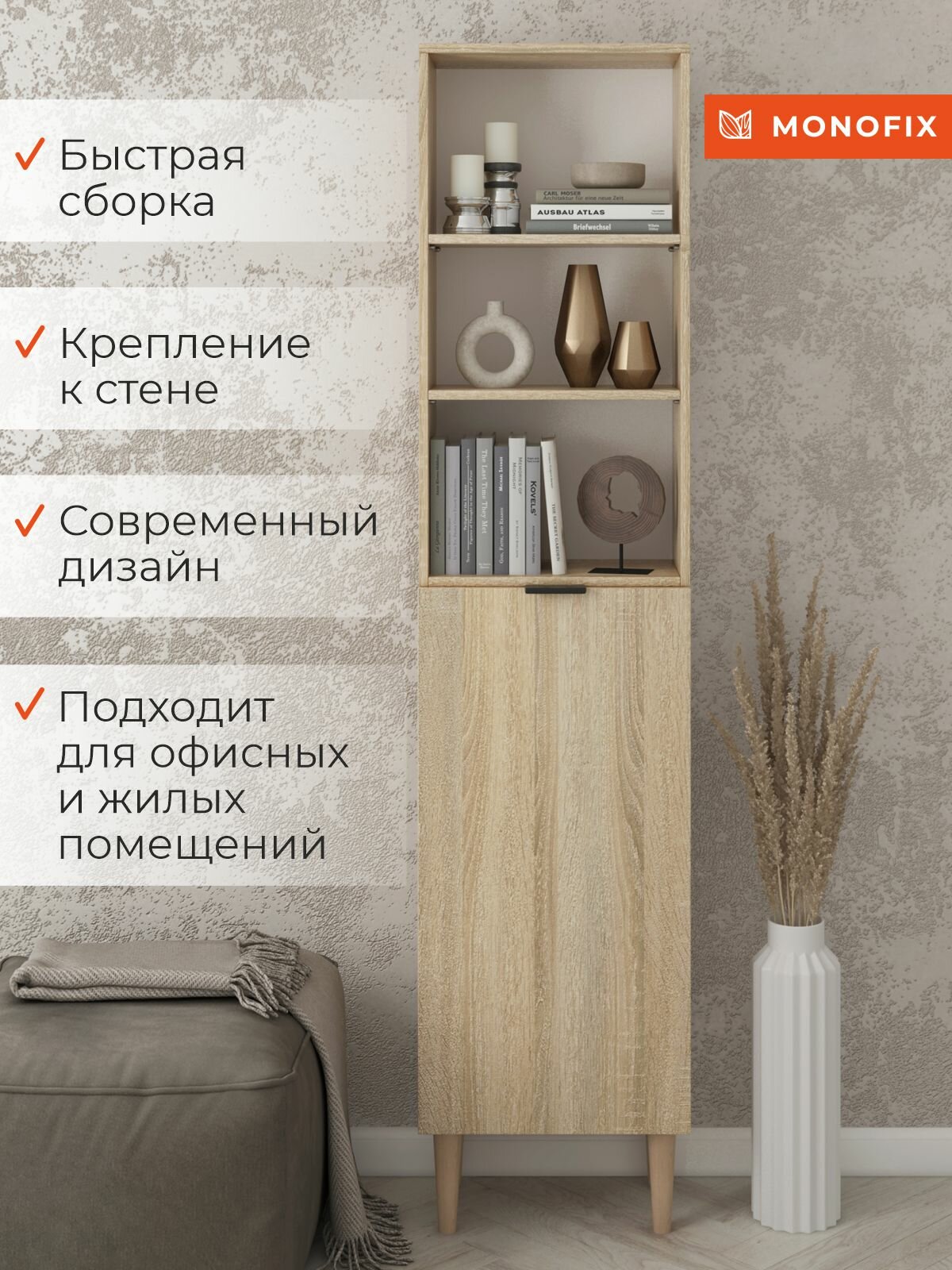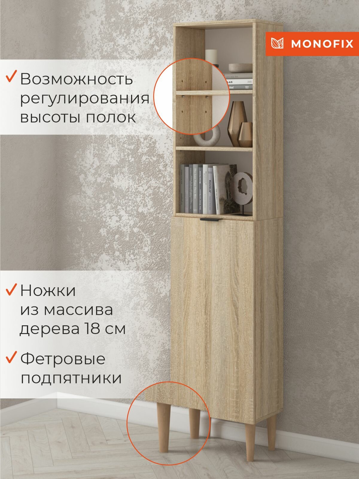 Стеллаж, шкаф-пенал напольный одос дуб сонома с 1 дверцей информация: