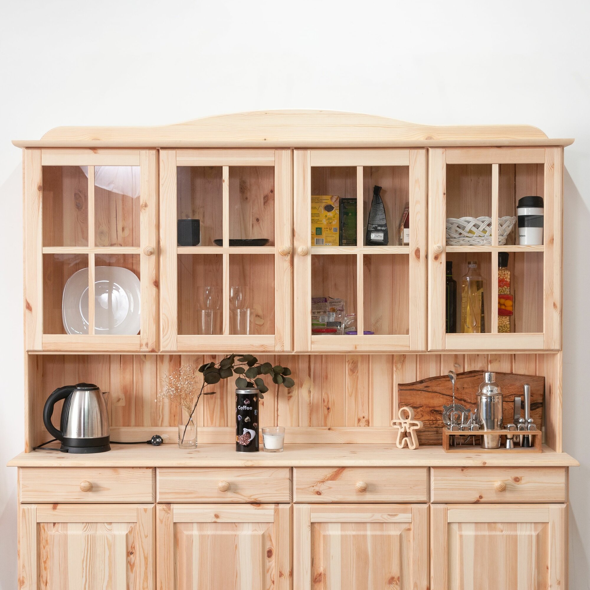 Dipriz Шкаф Лена 4-дверный из сосны, с полками (верхняя часть буфета Лена), прозрачный лак 43 100 ₽