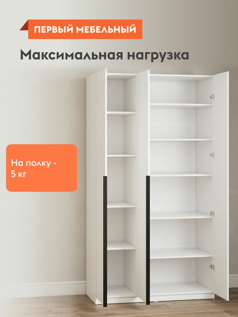 Шкаф для одежды распашной Нонтон Луас, 120 см, 7 полок и штанга, белый глянец