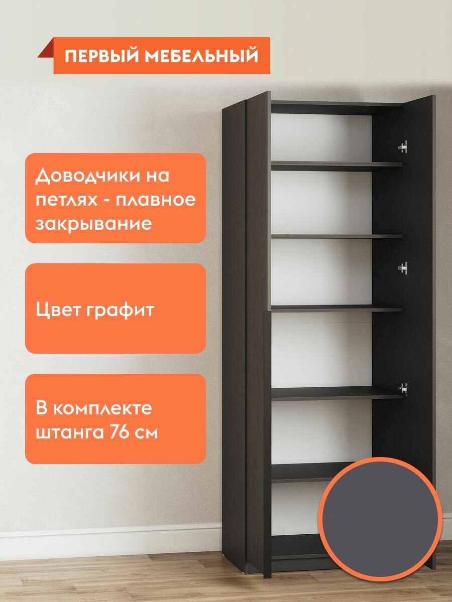 Шкаф распашной для одежды Арно с полками, с доводчиками, 80.1х50.6х221.6 см, Графит информация: