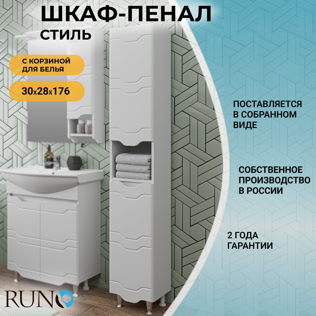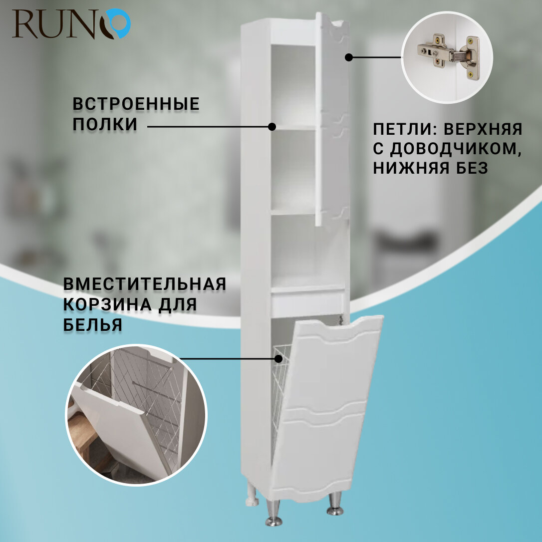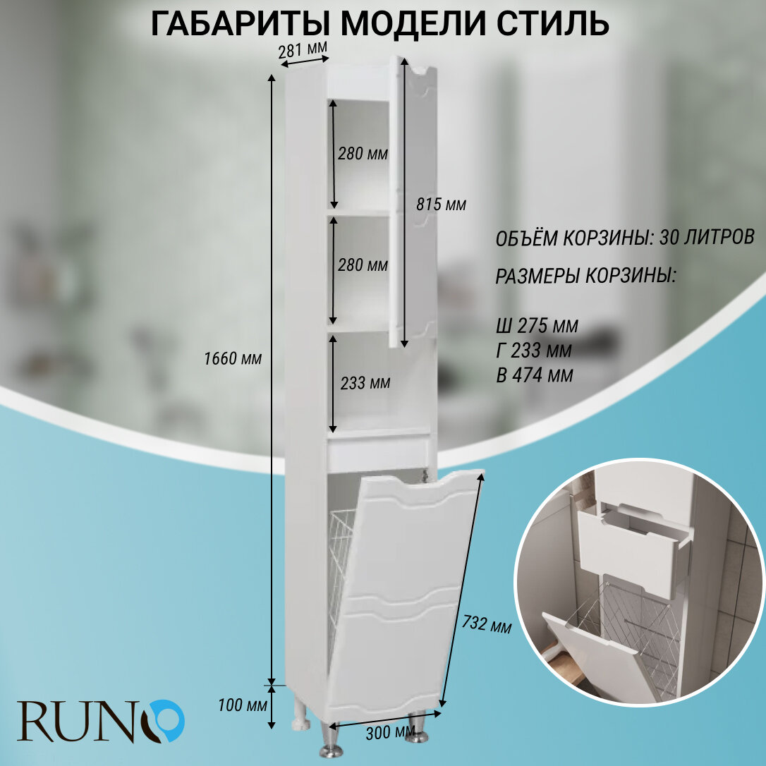 Шкаф в ванную пенал напольный Runo Стиль 30, правый, с корзиной для белья информация: