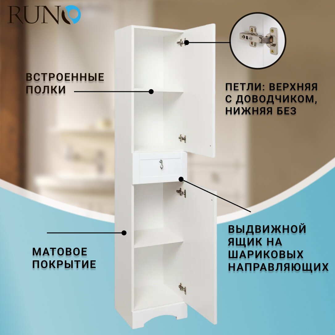 Шкаф в ванную пенал Runo Мерида 35, напольный, правый информация: