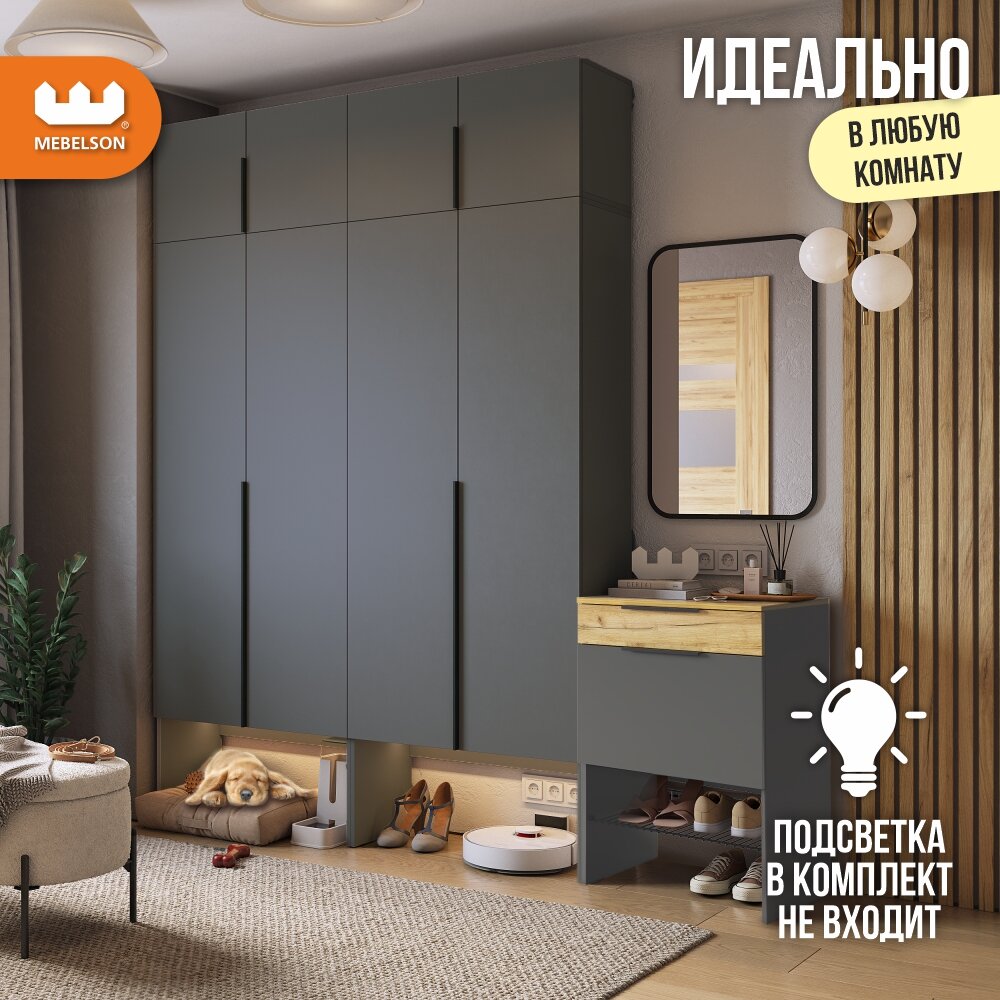 Отзывы на Шкаф для одежды распашной четырехдверный "Баско" К6, цвет Графит, 160*35*235 см, Mebelson