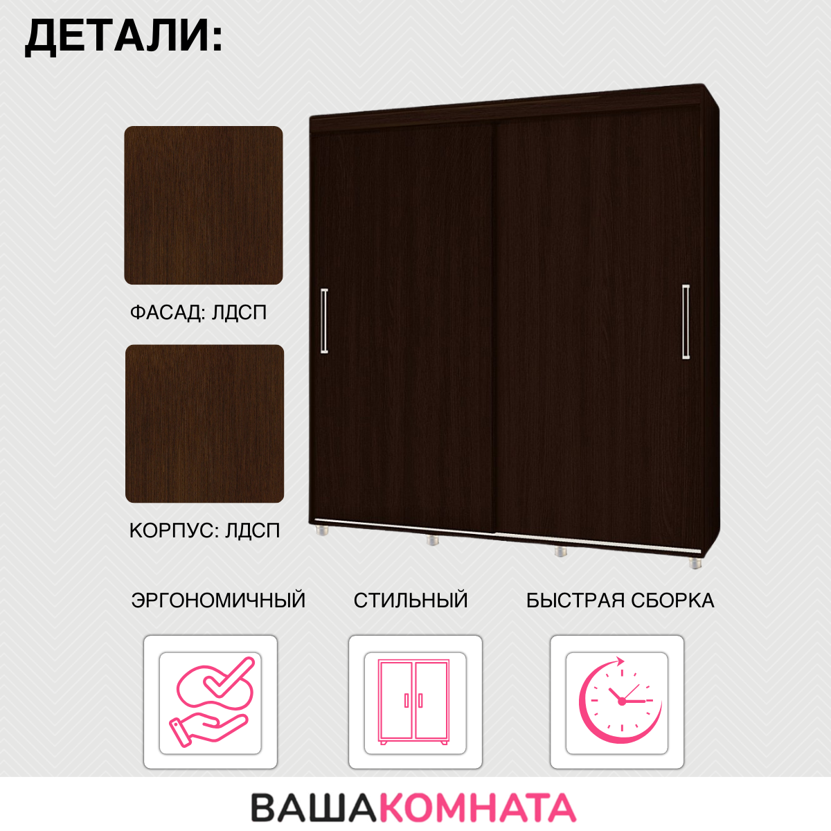 10 цен на Шкаф-купе "Комфорт-12 прайм" 2,0 метра, без зеркал цвет венге, материал ЛДСП
