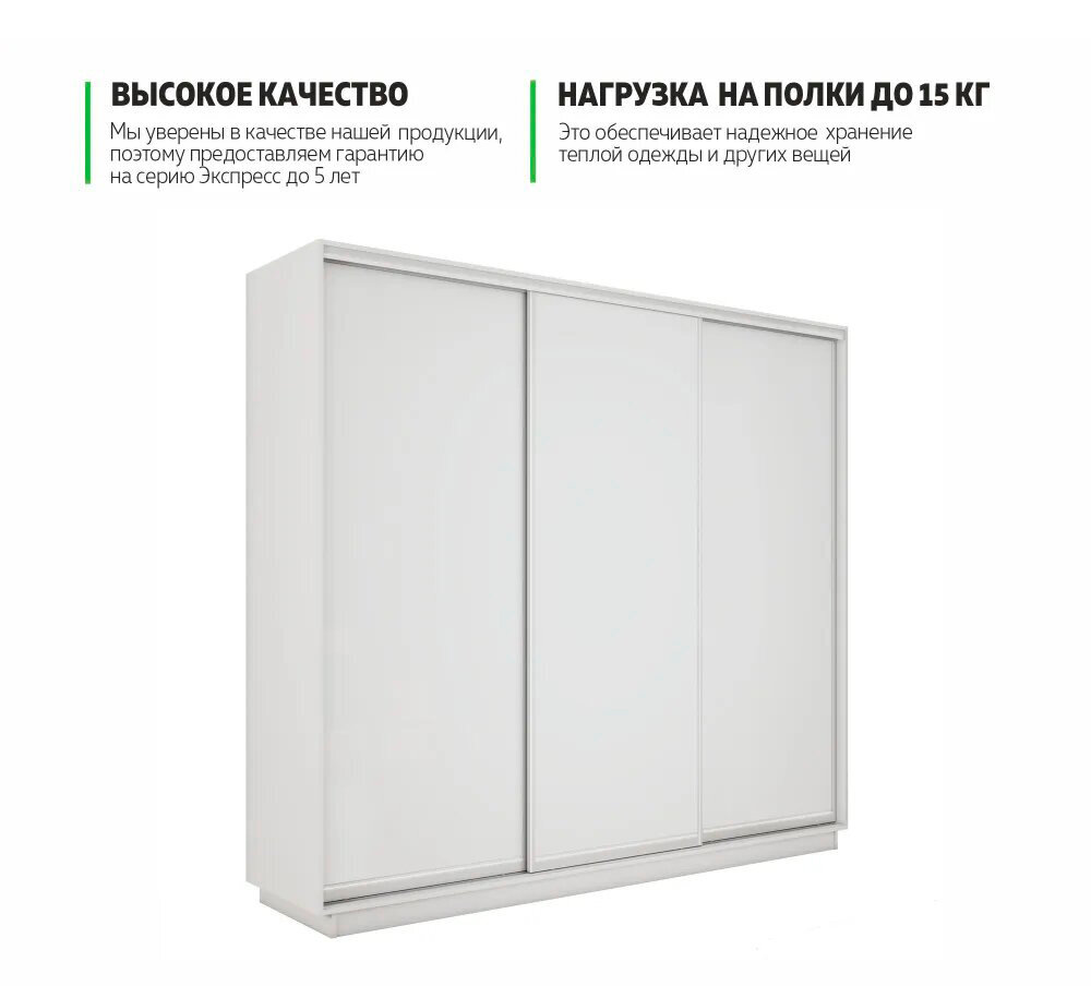 Отзывы на Шкаф-купе 1,8 Экспресс 3-х дверный 180х220х45 ЛДСП/ЛДСП/ЛДСП Белый снег