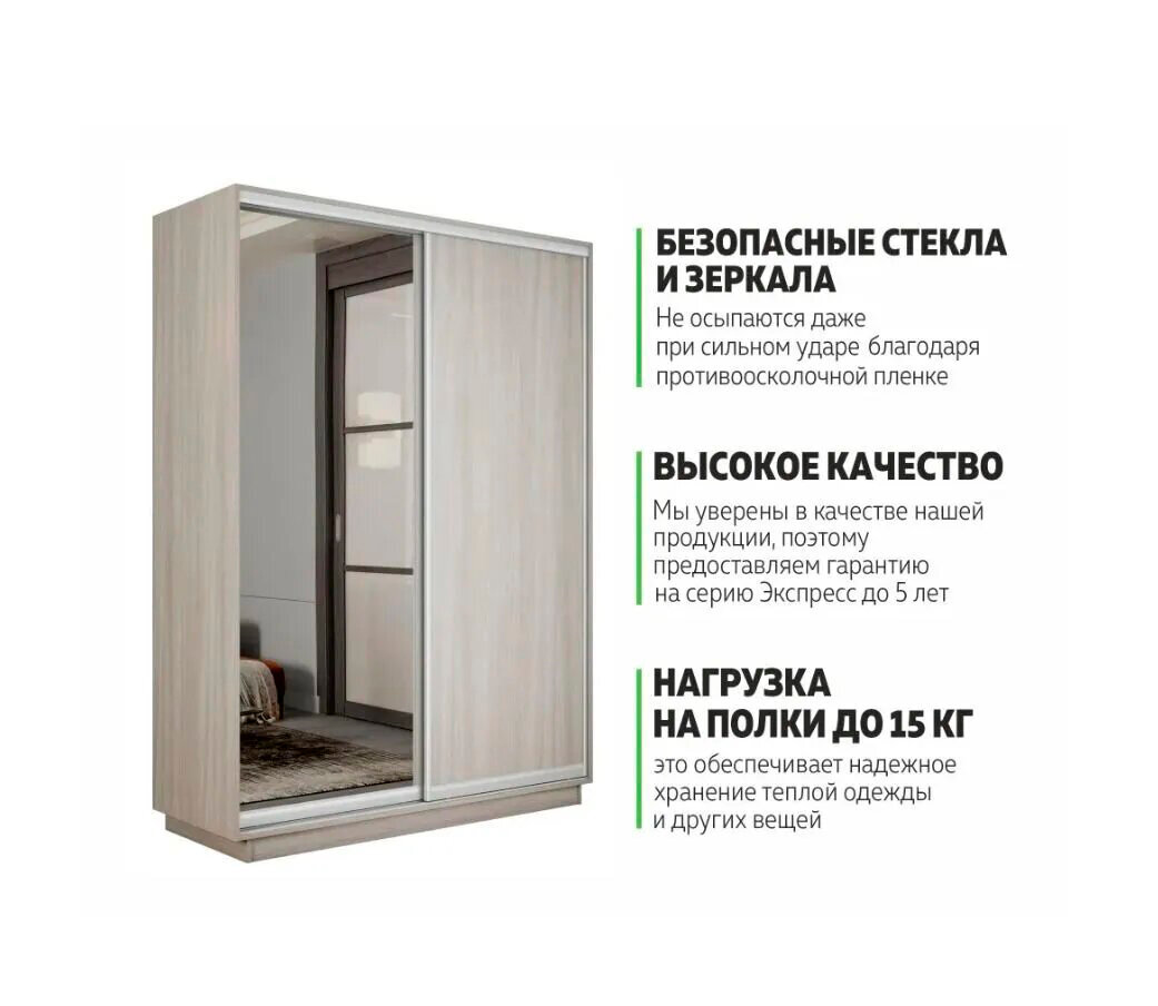 Отзывы на Шкаф-купе 1,2 Экспресс 2-х дверный 120х240х45 ЛДСП/Зеркало Ясень шимо светлый