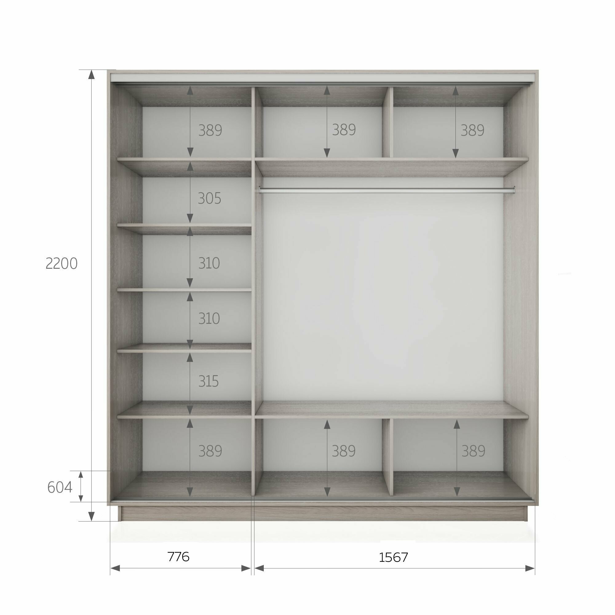 10 цен на Шкаф-купе Экспресс 3-х дверный, Зеркало/ДСП/Зеркало, 240х60х220, Мебельная компания Е1, Ясень Шимо светлый
