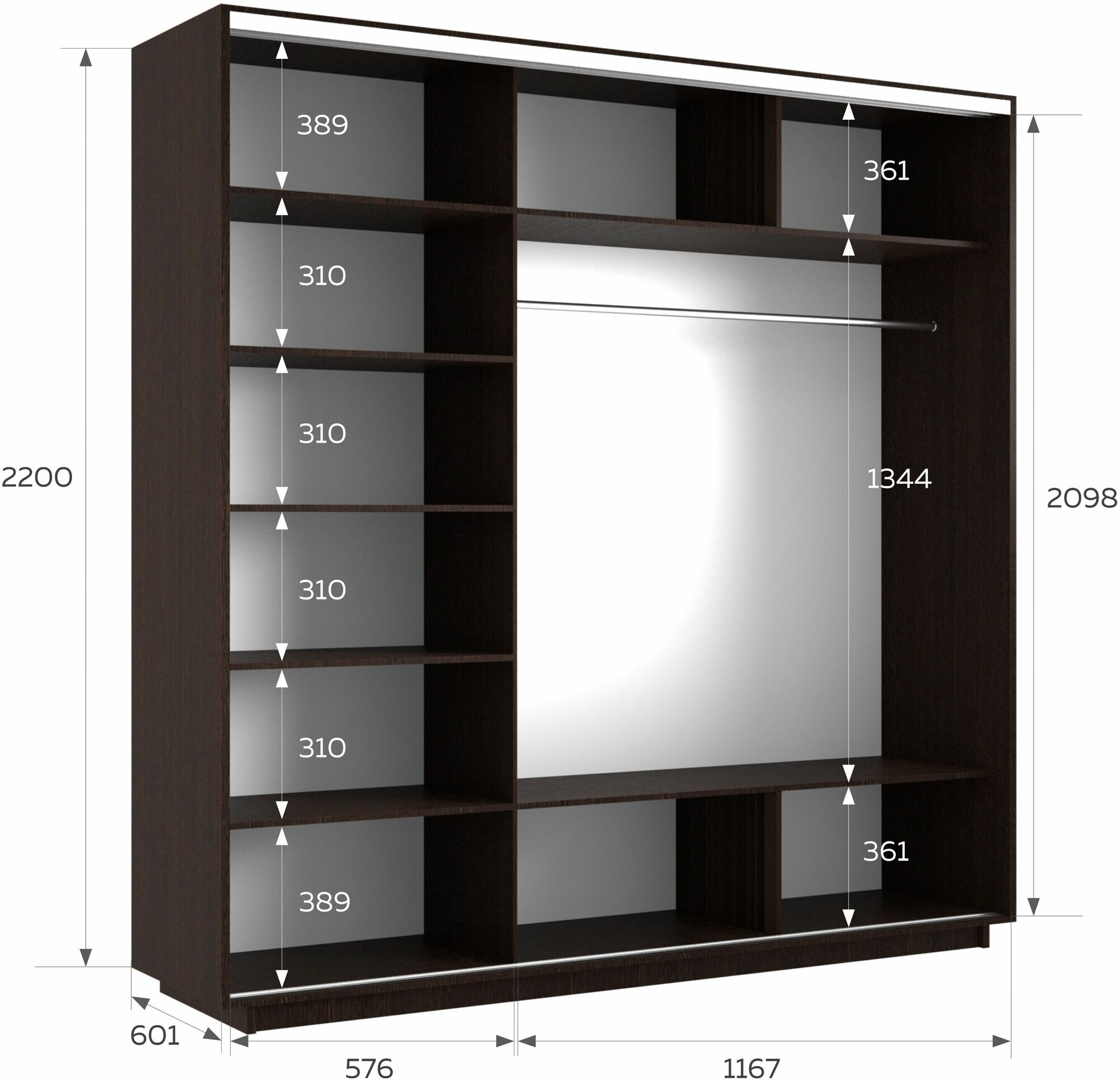 Шкаф купе для одежды Экспресс Дуо 3-x дв 180 x 220 x 60 ЛДСП Венге информация: