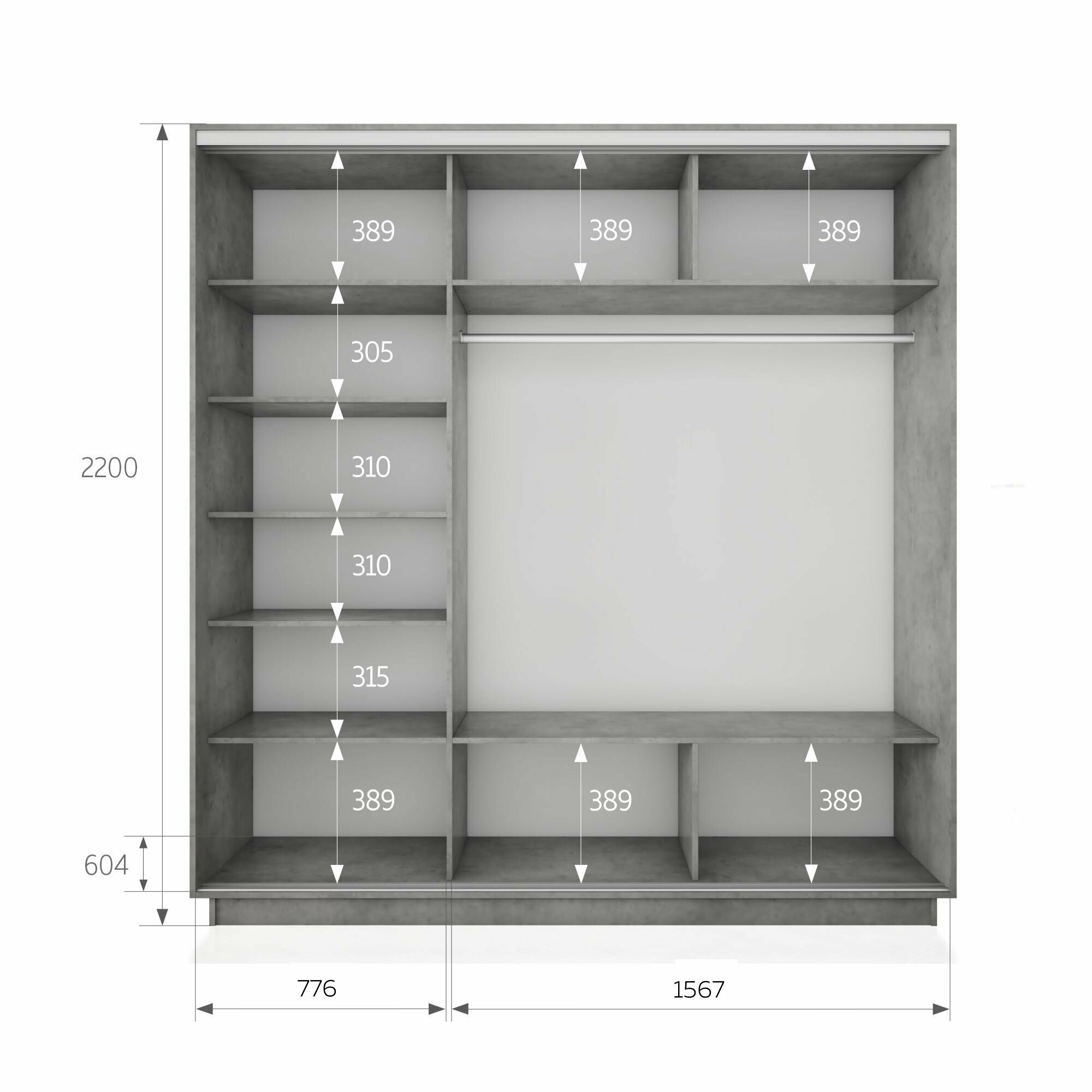 Шкаф-купе 2,4 Экспресс 3-х дверный 240х220х45 ЛДСП/Зеркало/ЛДСП Бетон 44 717 ₽