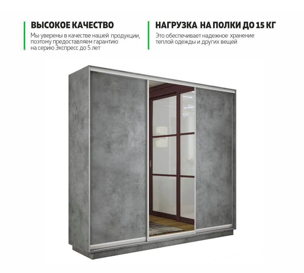 Отзывы на Шкаф-купе 2,1 Экспресс 3-х дверный 210х240х60 ЛДСП/Зеркало/ЛДСП Бетон