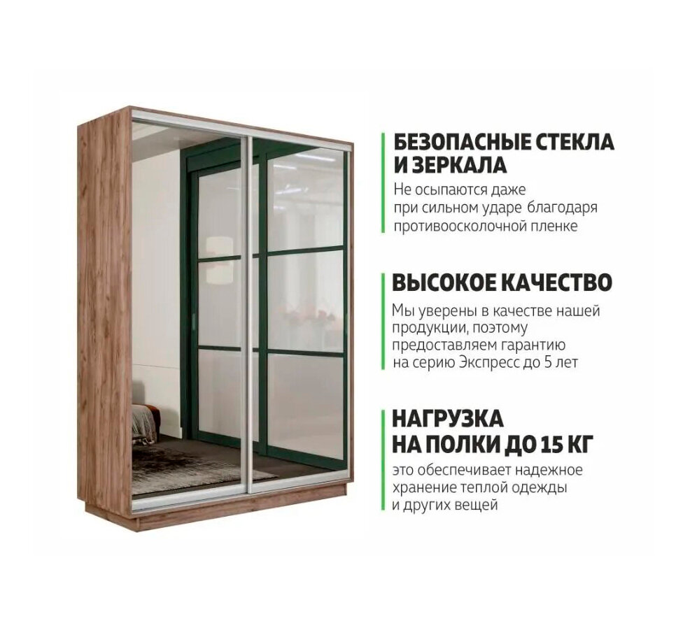 Отзывы на Шкаф-купе 1,6 Экспресс 2-х дверный 160х240х60 Зеркало/Зеркало крафт табачный