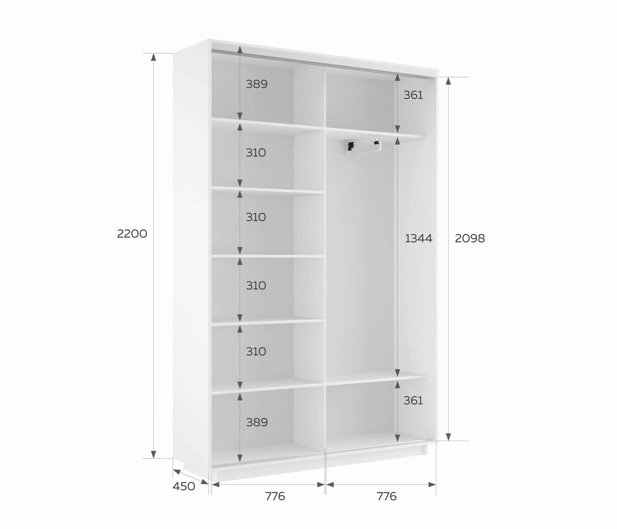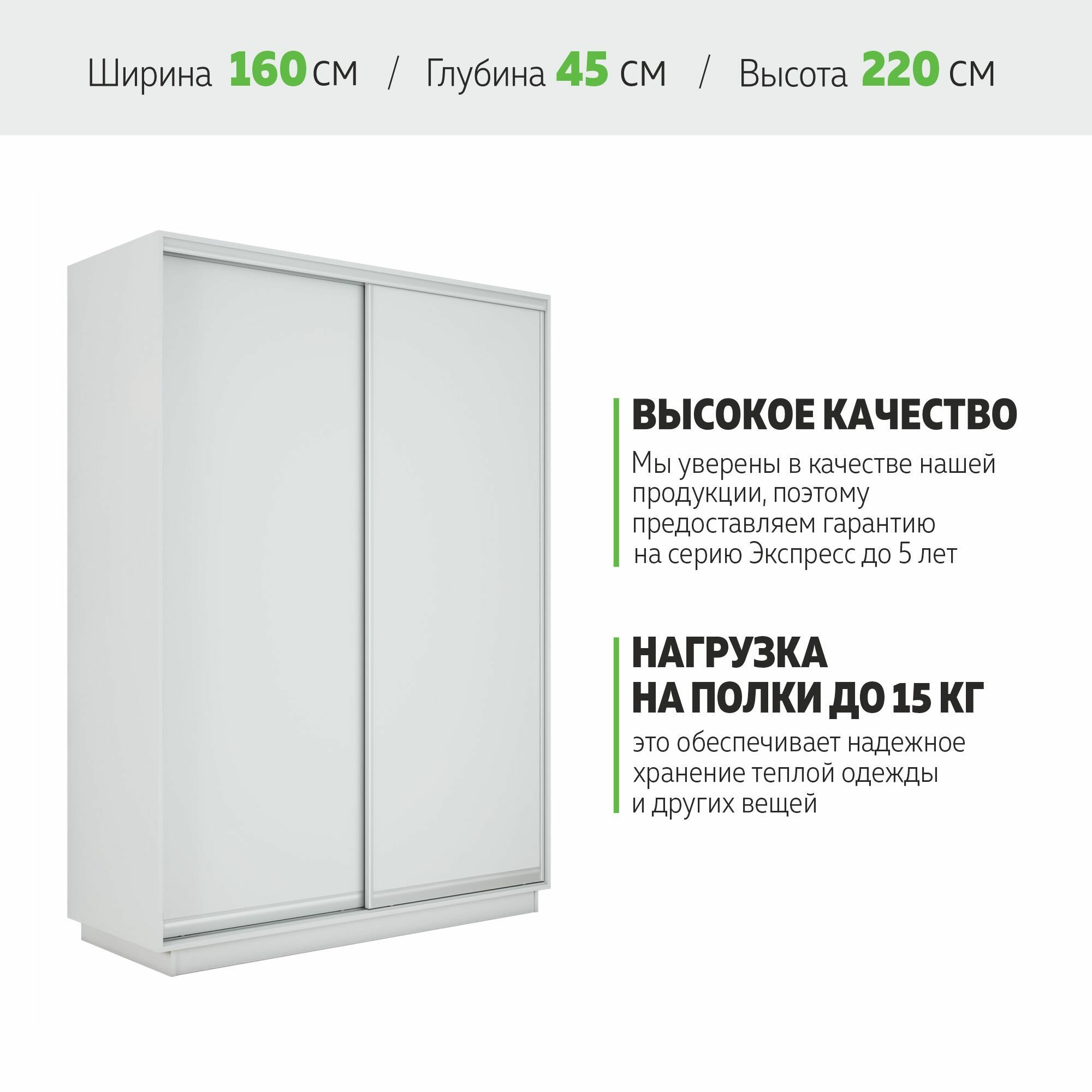 Шкаф-купе Экспресс 2-х дверный, ДСП, 160х45х220, Мебельная компания Е1, Белый Снег информация:
