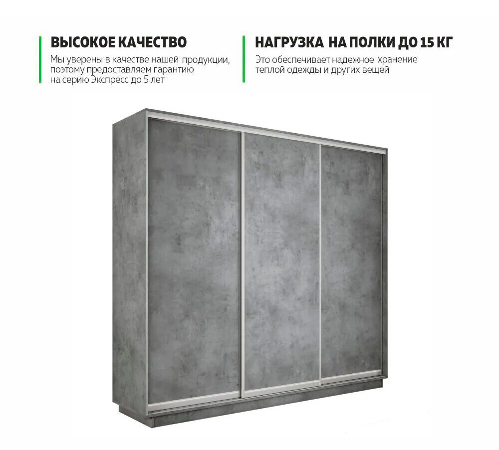 Отзывы на Шкаф-купе 2,1 Экспресс 3-х дверный 210х240х45 ЛДСП/ЛДСП/ЛДСП Бетон