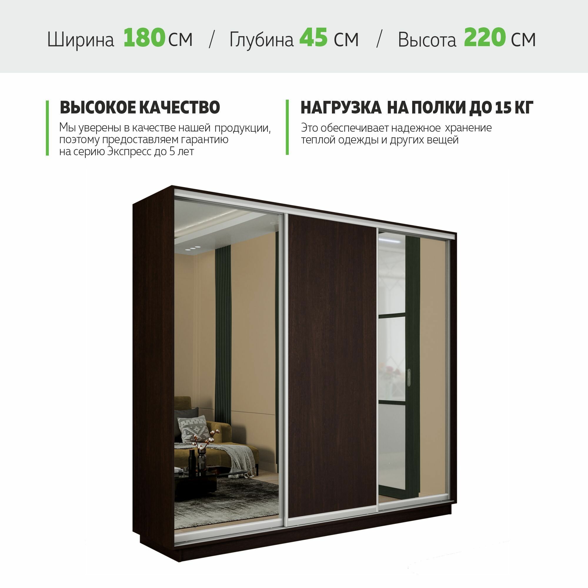 Шкаф-купе Экспресс 3-х дверный, Зеркало ДСП/Зеркало, 180х45х220, Мебельная компания Е1, Венге информация: